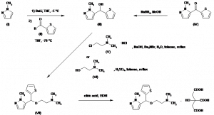 N,N-Dimethyl-N-[2-[1-(1-methyl-1H-pyrazol-5-yl)-1-(2-thienyl)methoxy]ethyl]amine citrate | 247046-64-6; 247046-62-4 (free base) | C13H19N3OS.C6H8O7 |
