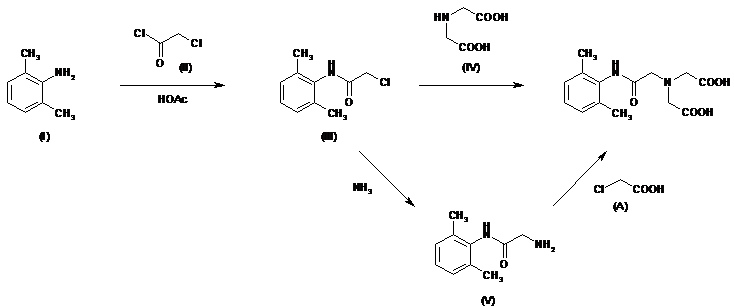 [N-(2,6-Dimethylphenyl)carbamoylmethylimino]diacetic acid | 059160-29-1 | C14H18N2O5 |