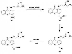 N-[1-[2-(Diethylamino)ethylamino]-10-oxo-10H-dibenzo[b,e]thiopyran-4-ylmethyl]carbamic acid methyl ester | 155990-11-7 | C22H27N3O3S |