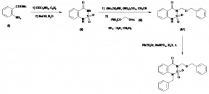 1-Benzyl-3-(benzyloxymethyl)-3,4-dihydro-1H-1,3-benzothiadiazin-4-one S,S-dioxide | 190835-51-9 | C22H20N2O4S |